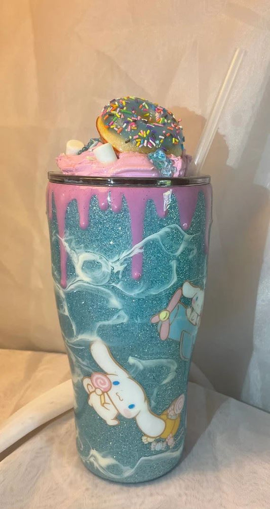 Caramel Mocha tumbler, customized personalized cup with realistic 3D whipped cream removable topper and caramel drizzle and 3d dripping.