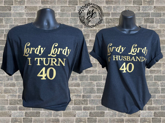 Lordy Lordy birthday t-shirt, customize it with any number (age) you’ll like, Lordy Lordy I turn 40 black with gold super soft tee.