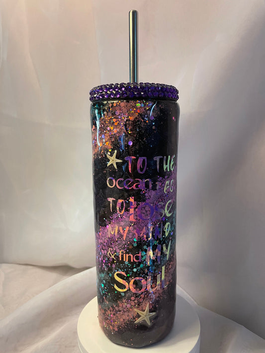Mermaid Tumbler custom 3D cup, 3d hand placed mermaid scales for that 3d realistic effect, the 20oz tumbler comes with optional rhinestones.