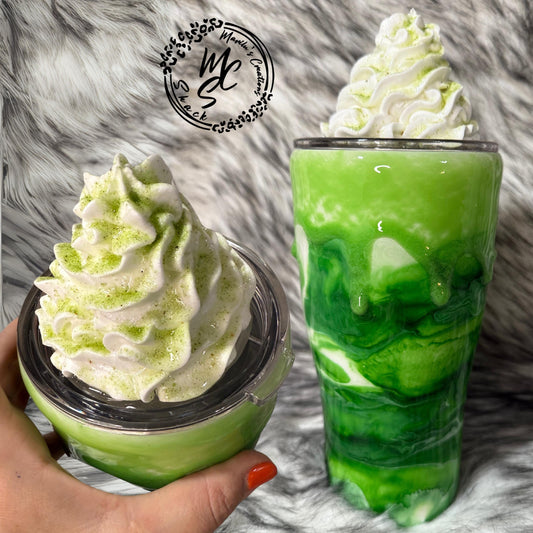 Matcha Latte Tumbler: Insulated Stainless Steel Mug with Straw & Faux Whipped Cream