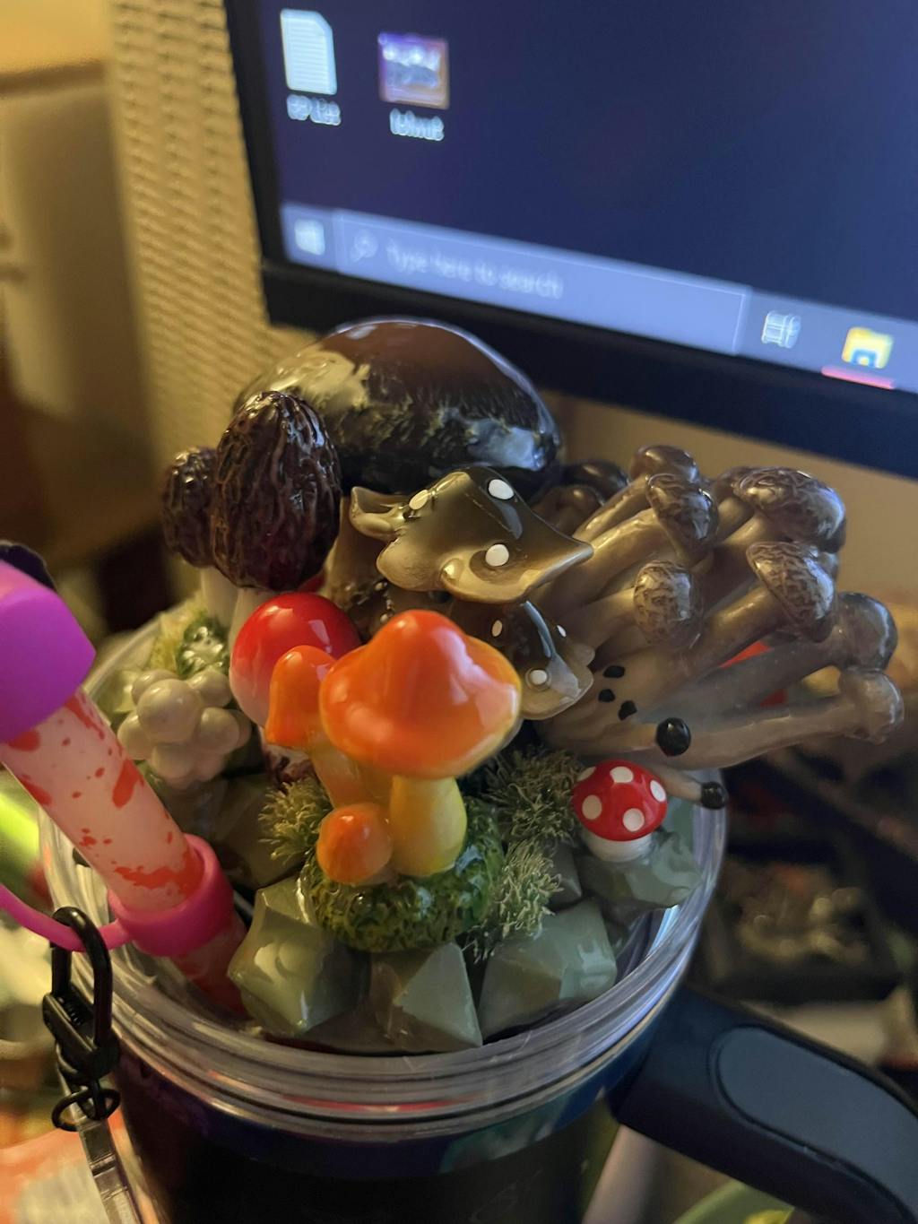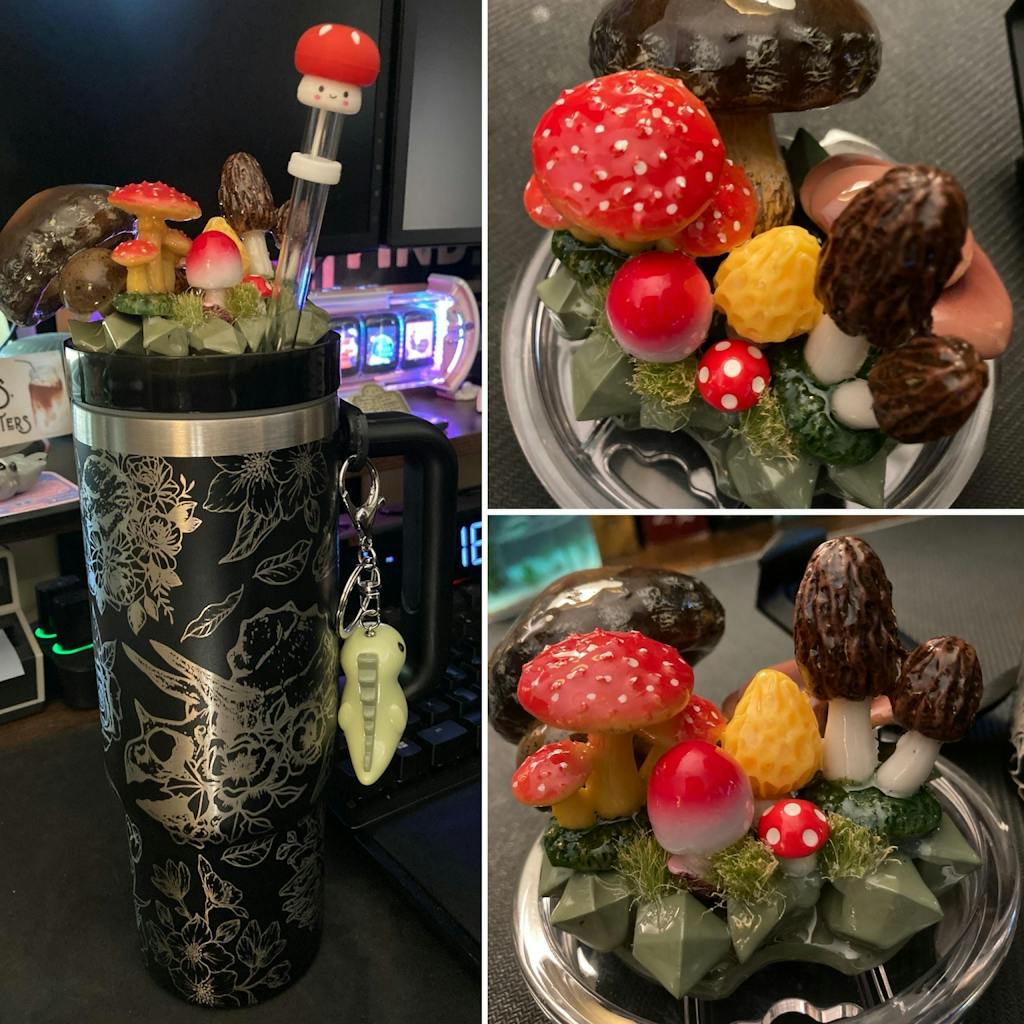 **Order now to elevate your tumbler with this whimsical 3D mushroom topper — a nature touch you can sip with!**